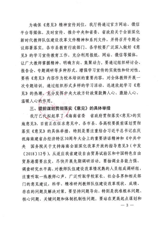 海南省教育厅关于做好《中共中央 国务院关于全面深化新时代教师队伍建设改革的意见》学习宣传和贯彻落实工作的通知