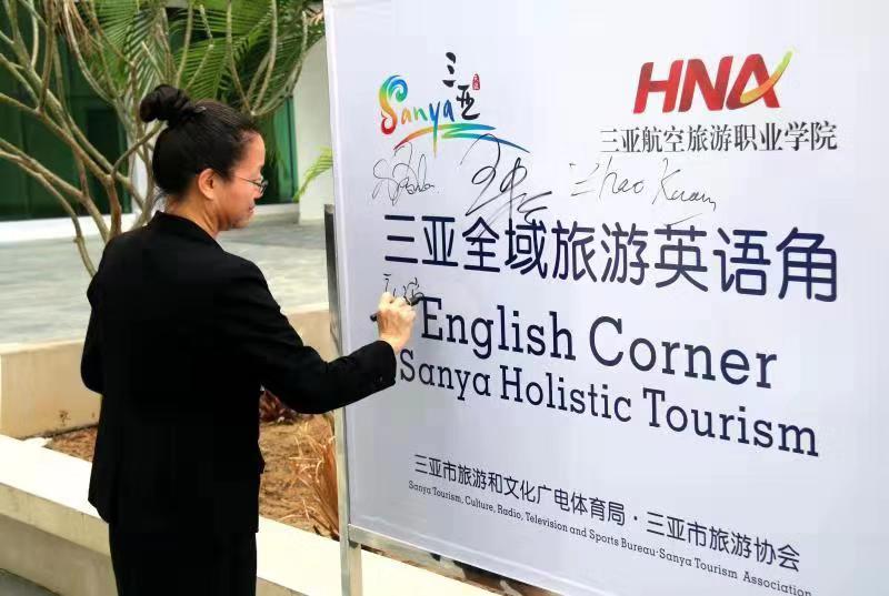 此次“三亚全域旅游英语角”落户学校,是对学校办学水平的肯定,也是对我校外语教学的促进。学校将依托海航集团先进的企业文化和良好的行业企业资源,利用学校优质的办学条件,努力办好“三亚全域旅游英语角”,积极组织形式多样、内容丰富的英语角活动,全力支持三亚国际化语言环境建设,助力自由贸易试验区的创建。