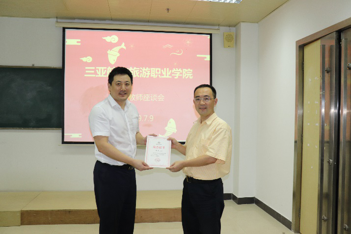 我校董事长兼校长杨涵涛对各位兼职教师来校交流深表感谢,兼职教师是我校大家庭的一份子,是各行各业的专家和精英,让学生在课堂就能了解各行各业的一线知识和前沿发展动态。同时,希望大家以后能够一如既往地支持、关心和帮助我校,能融入我校的教学工作,促进产业融合、校企合作。