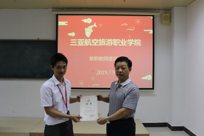 最后,杨涵涛董事长兼校长和梁维意副校长分别为校外兼职教师颁发优秀兼职教师证书和聘书并合影留念。