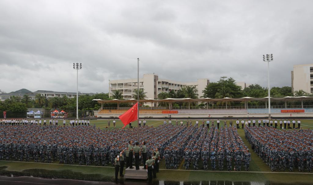 整场开学典礼暨军训动员大会天阴沉沉的,还不时飘着小雨。但全体新生严守纪律、秩序井然,展现了良好的军事素养。典礼结束后学校也为新生准备免费的暖暖姜汤,保障同学们的身体健康,更好地投入接下来的军训活动中。相信军训将使我们的学生从身体和灵魂得到升华。