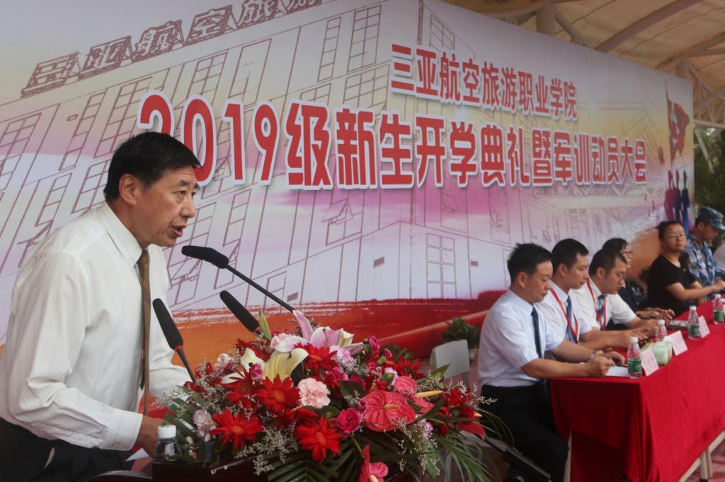 学校党委书记、董事长兼校长杨涵涛发表了开学典礼讲话。杨校长特别指出了在海南全岛建设自由贸易区(港)的政策背景下迎来了2019级新生,同学们将获得更为丰富的教育资源及就业机会,为学生施展才能打下了坚实的基础。他勉励同学们“一幕好剧,如何编导,如何演绎,要看自己如何规划大学学习、怎样度过大学生活;今后不论是在学校还是走入职场都要不断弘扬热爱祖国、忠诚敬业、全力以赴、敢于担当的‘罗文精神’。”