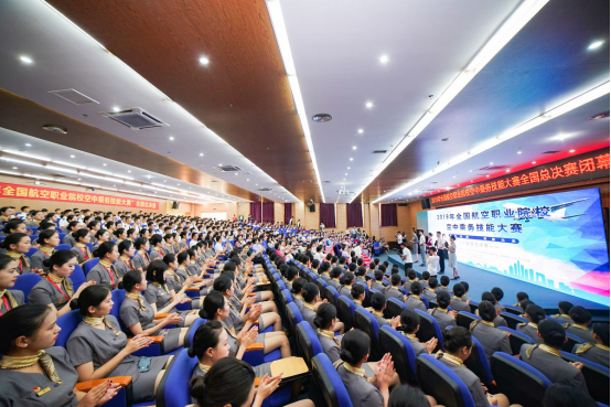 全国航空职业院校空中乘务技能大赛总决赛由全国航空工业职业教育教学指导委员会和海南省人力资源开发局联合主办,我校和中航出版传媒有限责任公司承办。2019年首次开赛,比赛分初赛、复赛和总决赛三个环节,历时近两个月的比赛,全国开设空中乘务专业高校共派出94支代表队参赛,经过潍坊、石家庄、重庆三站复赛会师三亚。总决赛分形象展示、理论知识、客舱服务、特情处置、机上急救五个环节,考核各参赛队伍基于典型工作任务的客舱服务核心技能和职业素养。