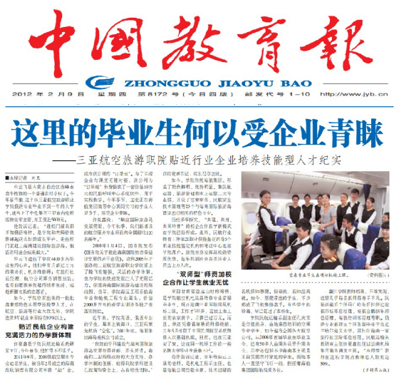 十二月的三亚,椰风阵阵,温暖如春,我校上空彩旗飘飘,身着制服的青年学子在如画的校园里合影留念。24日清晨,来自全国19所高校的28支队伍齐聚三亚,112名“准空姐/空少”开始角逐“全国航空职业院校空中乘务技能大赛”总决赛的桂冠。经过两天的激烈比拼,在各大航空公司乘务管理部门领导组成的评审团的专业评审下,来自长沙航空职业技术学院、三亚航空旅游职业学院、长沙财经学校、重庆海联职业技术学院的参赛队伍荣获大赛一等奖。