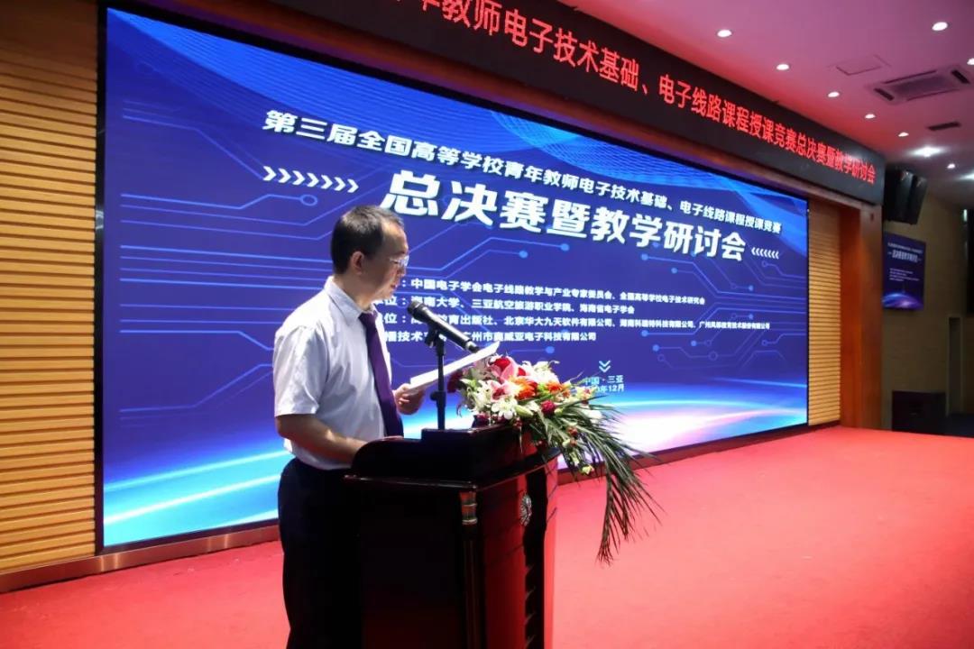 本次大会旨在贯彻落实国务院《关于全面深化新时代教师队伍建设改革的意见》,落实教育部高等学校电工电子基础课程教学指导委员会的有关要求,推动高等学校电子技术基础、电子线路任课教师专业发展和教学能力的提升,进一步激发教师投入课程建设和教学研究的热情,全面提高电子技术基础、电子线路教师的专业素质能力。中国电子学会电子线路教学与产业专家委员会主任、北京航空航天大学大学校学术委员会副主任张晓林教授、教育部高等学校电工电子基础课程教学指导分委员会主任、东南大学王志功教授、开元集团网站党委书记、董事长兼校长杨涵涛、海南大学教务处处长邱锡光为大会致辞。大会由海南省电子学会理事长陈褒丹、教育部高等学校电工电子基础课程教学指导分委员会秘书长孟桥主持,来自高校和企业界的12位专家分别做了专题报告。