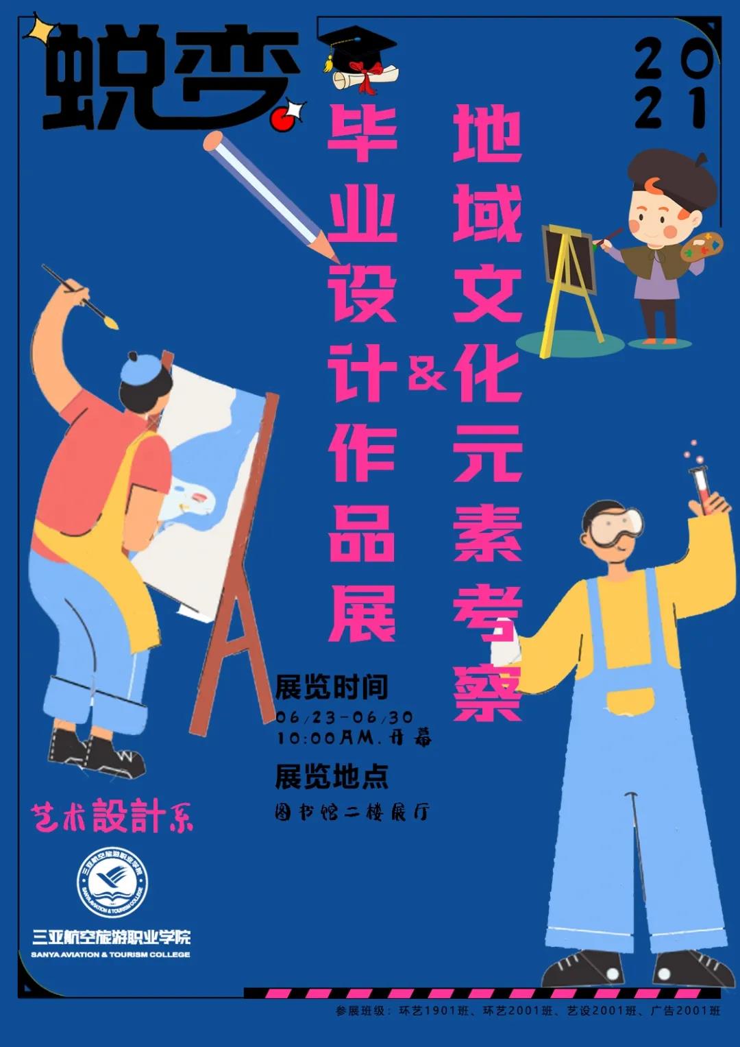 为期一周的三亚航院艺术设计系2021毕业设计&写生作品展将于2021年6月23日拉开帷幕,本次展览以“蜕变”为主题,19级、20级全体学生参展,期待您的到来~