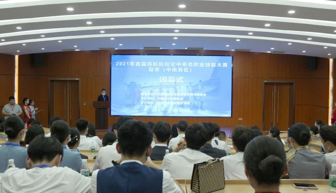 为全面贯彻习近平总书记在全国职业教育大会上对职业教育工作的重要指示精神,落实民航局党组对专业人才培养的要求,进一步推进院校民航空中乘务专业建设,以赛促教、以赛提质、以赛培优。由中国航空运输协会主办,开元集团网站承办的2021年首届民航院校空中乘务职业技能大赛中南赛区复赛于2021年9月26-27日顺利举行。经过激烈角逐,我校参赛代表队荣获大赛一等奖。