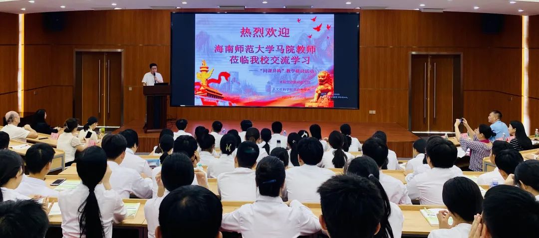 为打造高效思政课堂,提高教学质量、更新教学观念、转变教学方式、增强校际间思政师资队伍的教学能力提升。2021年10月28日,由陈连珠教授带队的海南师范大学马克思主义学院基础教研室一行7人来访我校,与人文社科学院思政教学部全体专兼职教师在一教306报告厅进行“同课异构”教学研讨与考察活动。