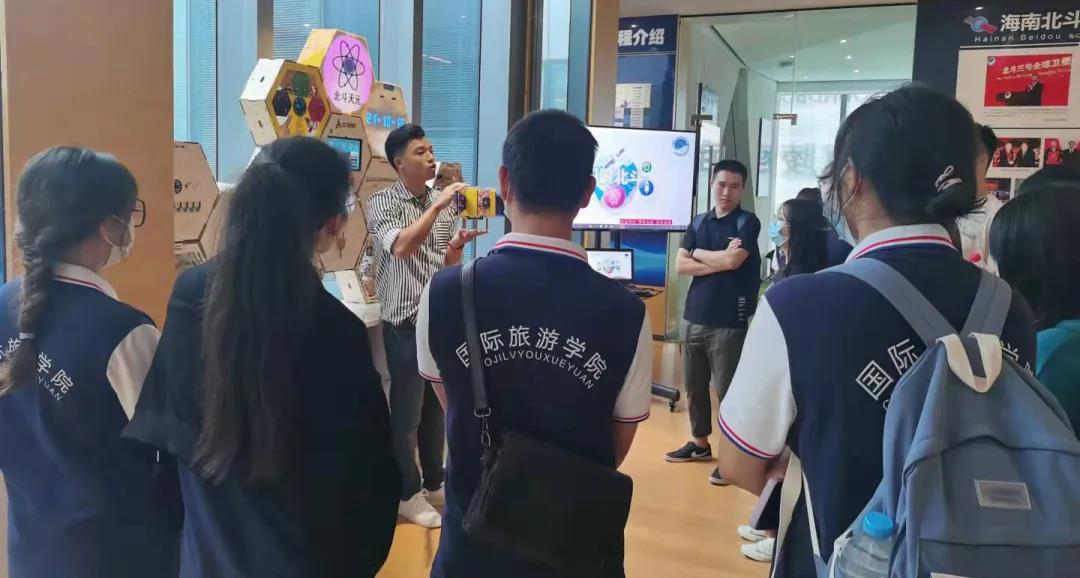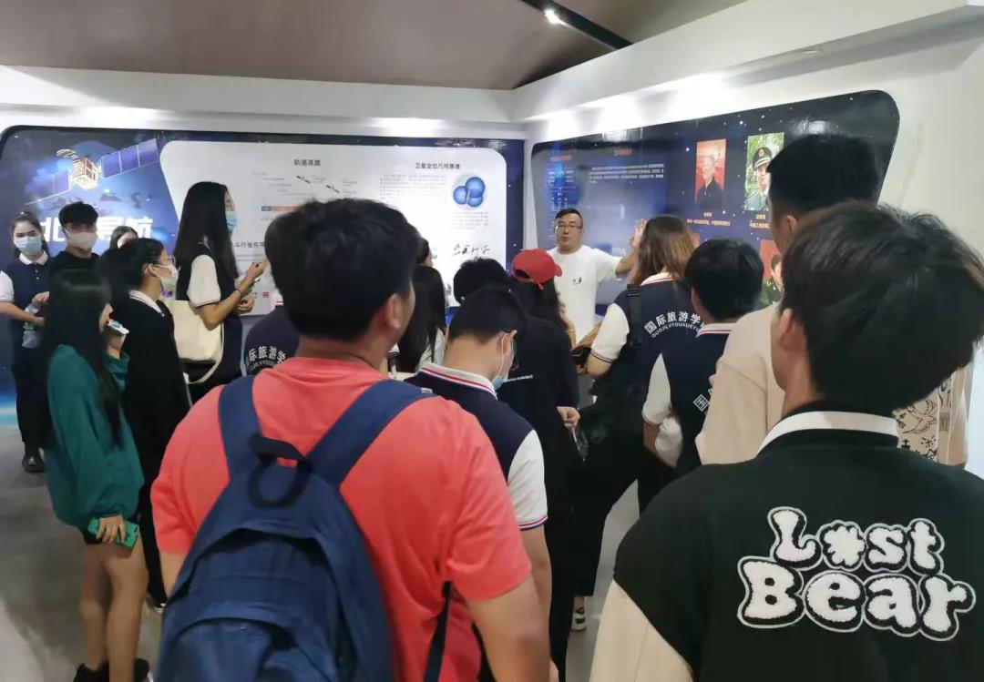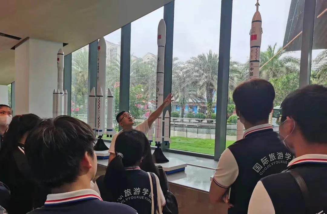 我校旅游管理专业学生分为6组,由旅游管理系教师和辅导员带队,各班班干部和小组组长引导参观了海南北斗科普研学基地,并进行深入交流与学习。