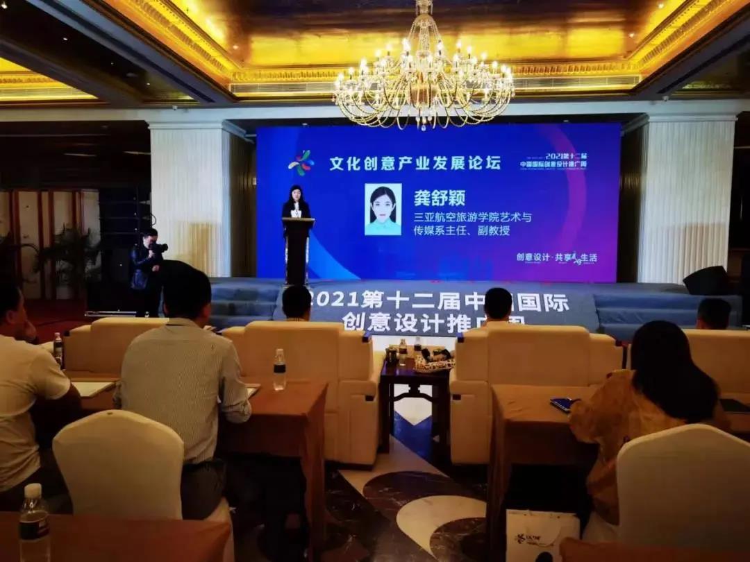 学校高度重视此次活动,杨涵涛书记与海南省贸促会林春红副会长亲自沟通活动保障事宜。国际旅游学院、乘务学院等各二级学院周密部署、科学组织,积极动员师生参加“创意周”系列活动:一是由艺术与传媒系3名教师带领艺术设计、视觉传达设计、环境艺术设计、播音主持艺术等4个专业共计70余名学生参加活动;二是专门选派乘务学院24名志愿者参与引导和讲解工作;三是艺术与传媒系主任龚舒颖副教授在活动之一的中国(三亚)文化创意产业发展论坛上,受邀发表了《发挥艺术教育特色 助力海南文创产业发展》的主旨演讲,呼吁发挥艺术教育特色,助力海南文创产业发展。