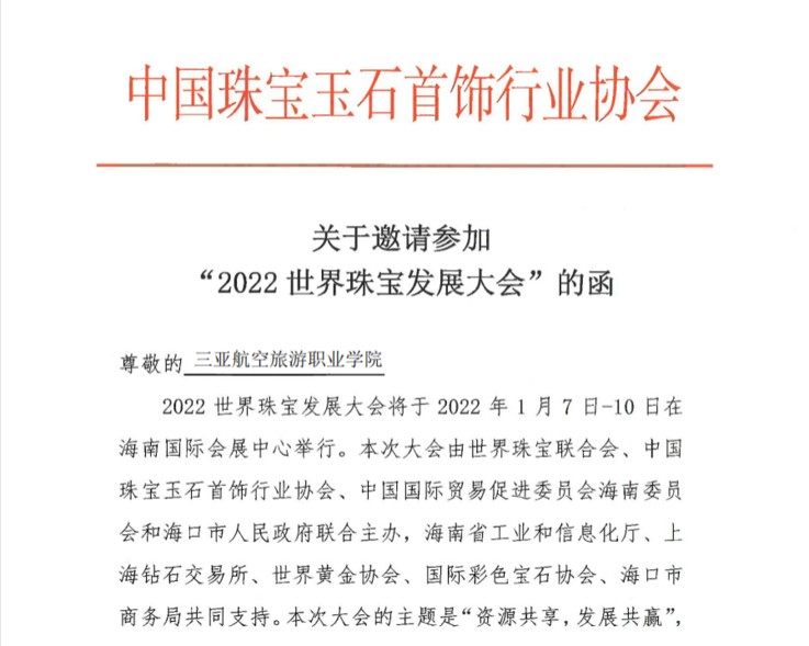 中国珠宝玉石首饰行业协会邀请函