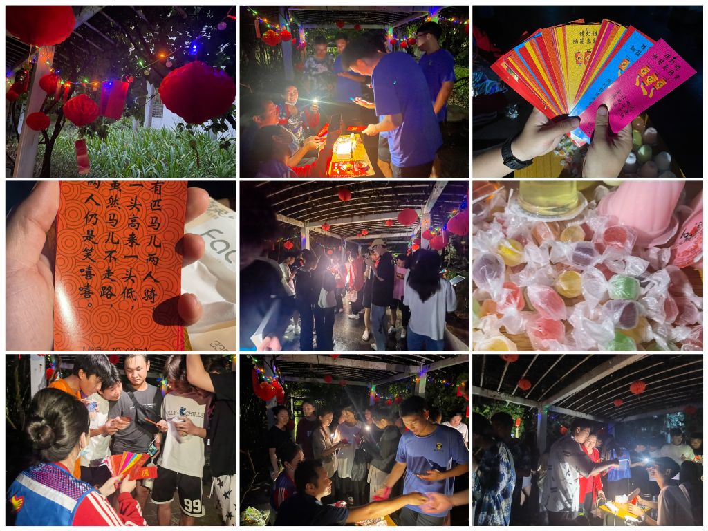 为喜迎中秋佳节,营造浓郁的节日气氛,弘扬中国传统文化,9月27日至29日晚,三亚航院青年志愿者协会在二号宿舍楼门口南侧,绿荫长廊举行中秋节赏灯、猜灯谜活动。活动现场气氛热烈,学生们踊跃参与。读题、思考、驻足讨论,同学们相聚彩灯之下,思于乐,学于乐,共度佳节。