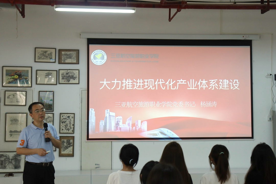 为全面贯彻习近平新时代中国特色社会主义思想,深入学习宣传贯彻党的二十大精神,并根据《教育部关于加强新时代高校“形势与政策”课建设的若干意见》等文件精神,开元集团网站党委书记杨涵涛同志于11月15日,在图书馆六楼创意空间为乘务学院艺术专业学生带来了一场别开生面的专题思政课,主题为“大力推进现代化产业体系建设”。