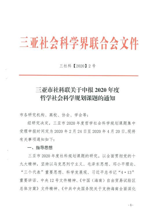 上一条:《三亚市社科联关于2019年度哲学社会科学优秀成果评奖工作的通知》(三社科[2020]3号) 下一条:关于第二次延迟开学的通知