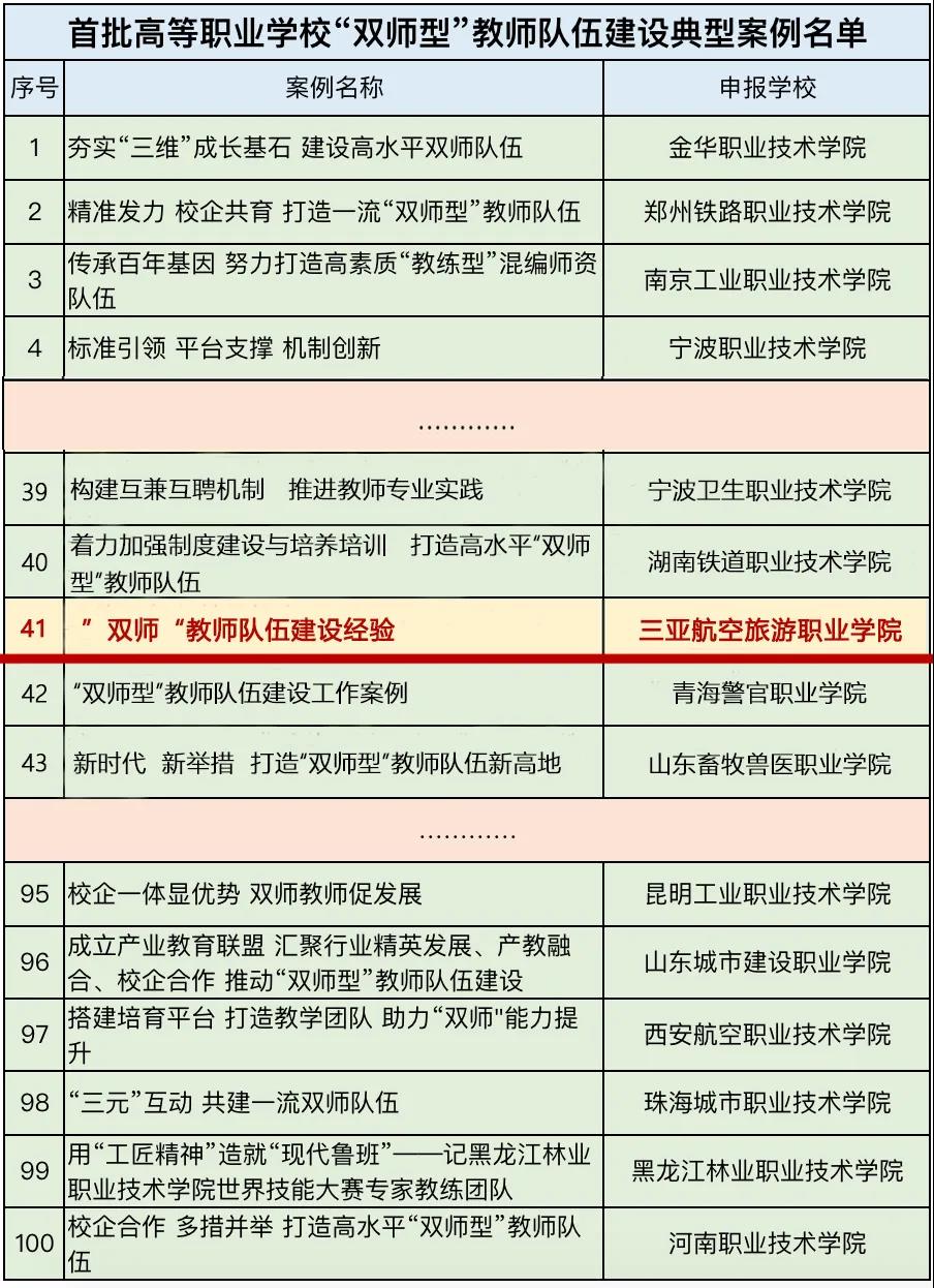全国职业院校“双师型”教师队伍建设典型案例遴选旨在通过总结凝练各地、各职业院校“双师型”教师队伍建设的好做法、好举措、好经验,打造一批在全国有影响力、具有示范引领作用的职业教育“双师型”教师队伍建设典型经验和优秀案例,进一步推进职业教育教师队伍管理制度建设及教师素质和教育教学质量提升。