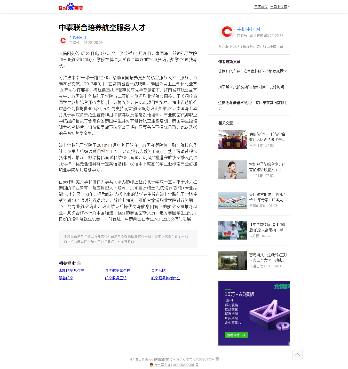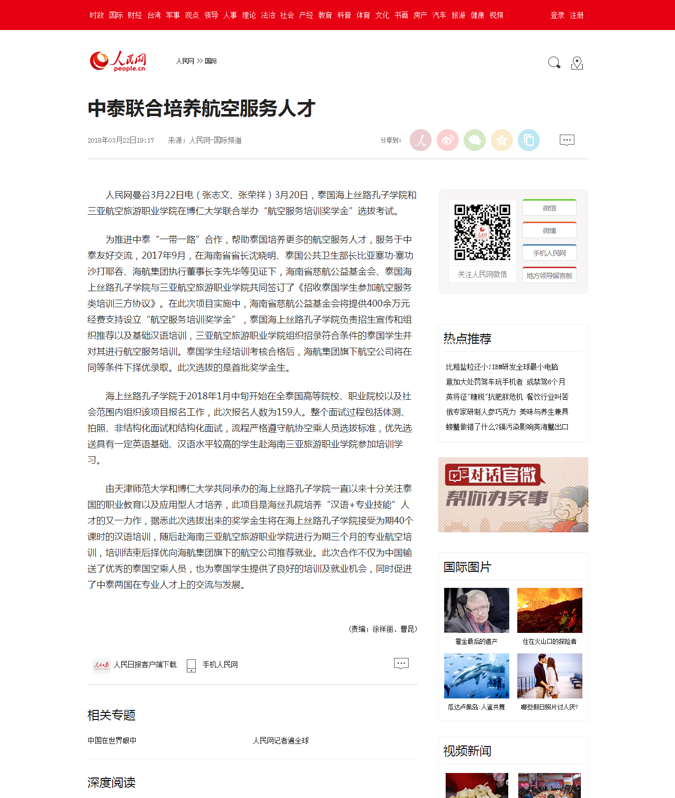 上一条:泰国空乘人才班开班仪式相关媒体报道 下一条:留学生的“中国梦”相关媒体报道