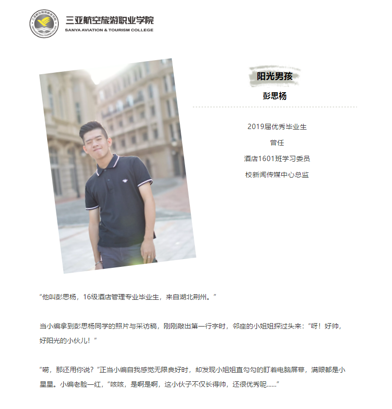 阳光男孩彭思杨:必须非常努力,才能看起来毫不费力