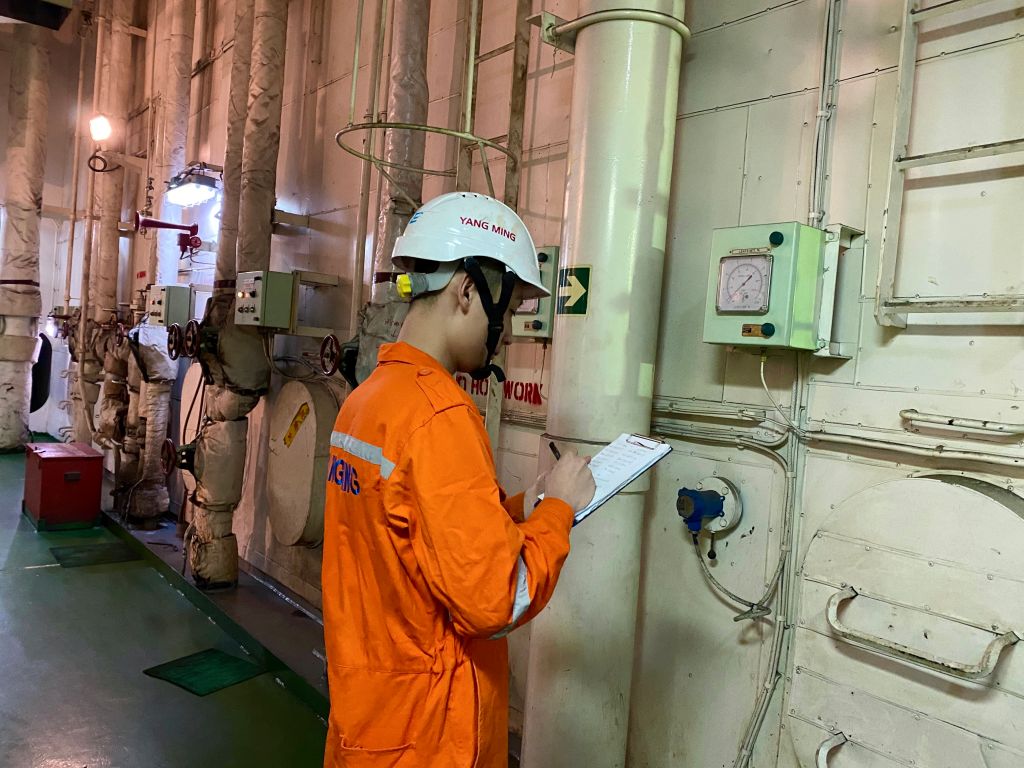 欧泽宁同学现在在“YM UPWARD”(常明)轮上实习,在实习期间,他积极服从船舶领导的各项工作安排,轮流跟各轮机员一起工作,对管轮所负责的设备进行维护保养,确保设备的正常运行。下班后的闲余时间,他还仔细阅读各设备的说明书,了解设备工作原理及故障处理等。在外贸船上工作经常需要跟外国人进行沟通交流,对英语听力和口语要求比较高,他在完成工作之余,每天坚持至少抽出两个小时来学习和练习英语,以期实习完后能够成为一个合格的远洋三管轮,正式任职后他的月薪为5800美金。
