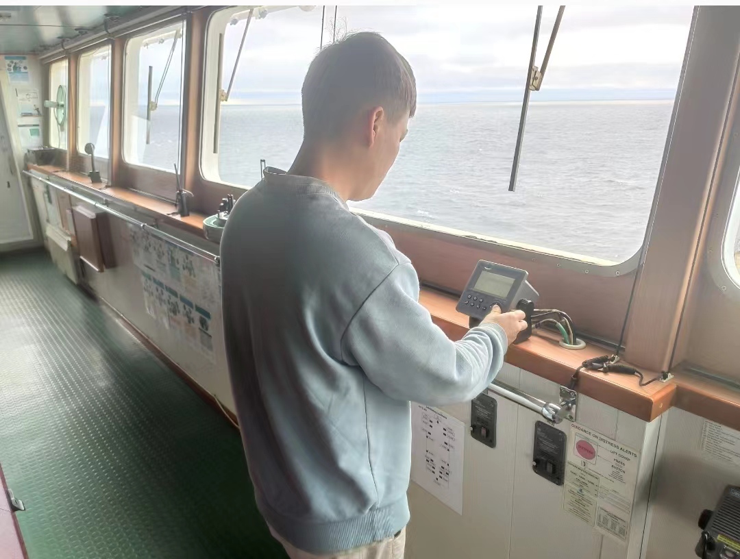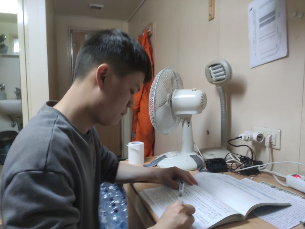 在“CL EDI”(艾迪)轮上实习期间,覃学山学到了很多。刚上船时,他便在驾驶台上进行了操舵练习。掌握该船舵效后,他又学习了如何使用电罗经,GPS,测深仪,雷达,电子海图等航海仪器,交通密度比较大时学习实践中是如何避碰,如何呼叫他船以及回应他船。夜晚时他还会看看附近他船的号灯,是否与教材上所教的号灯一致。