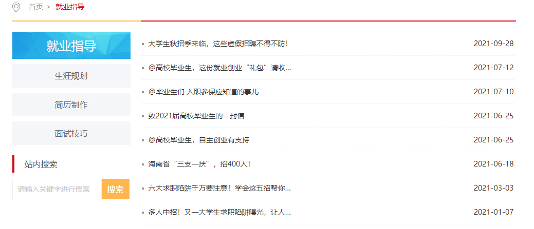 上图:毕业生就业指导信息截图