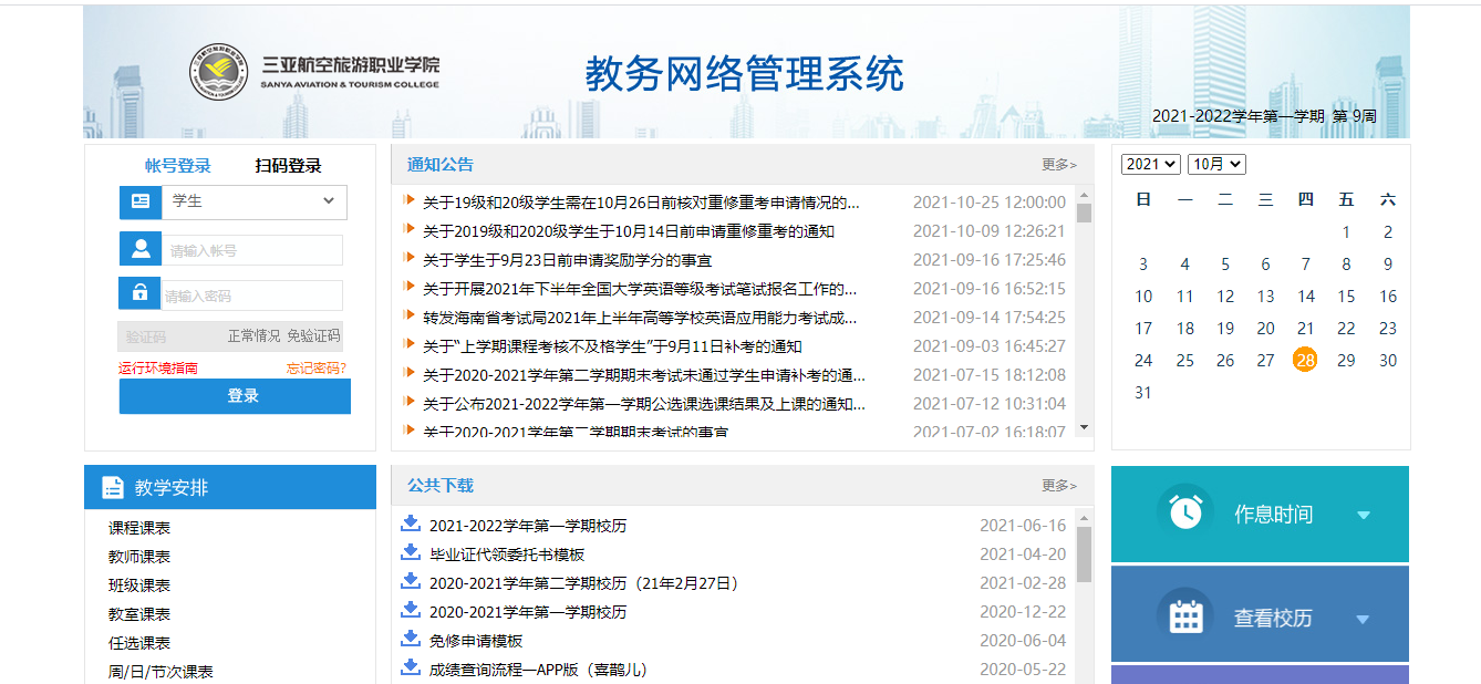 上图:教务管理系统