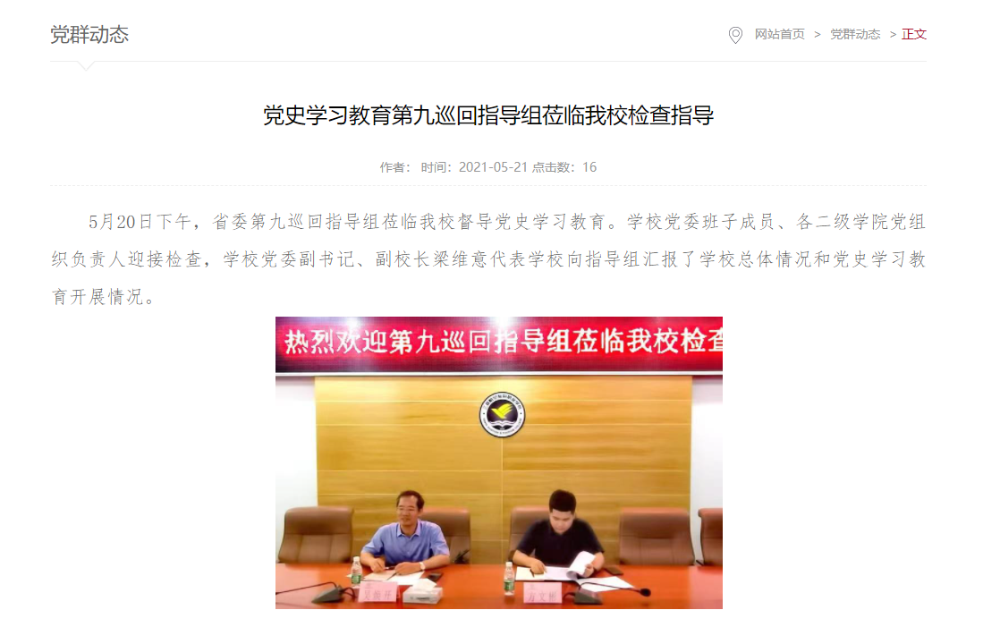 上图:党史学习教育第九巡回指导组莅临我校检查指导
